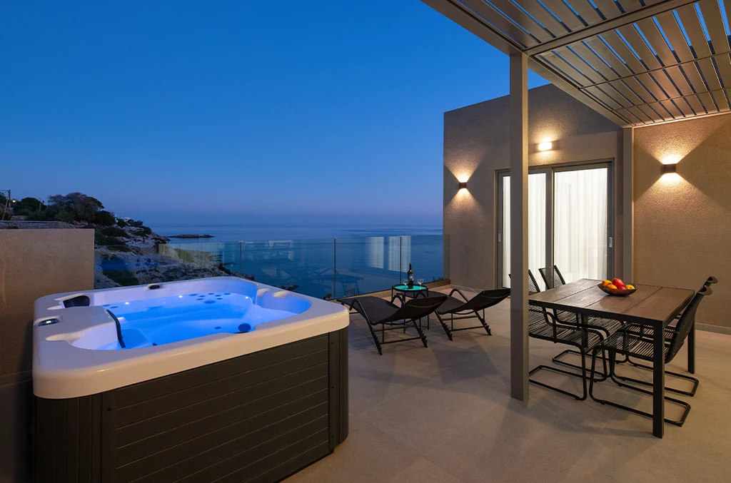 Let the water and sea breeze create moments of pure relaxation. Our luxury suites with private jacuzzi offer an intimate and tranquil atmosphere, perfect for unwinding after a day by the beach or exploring Rhodes.