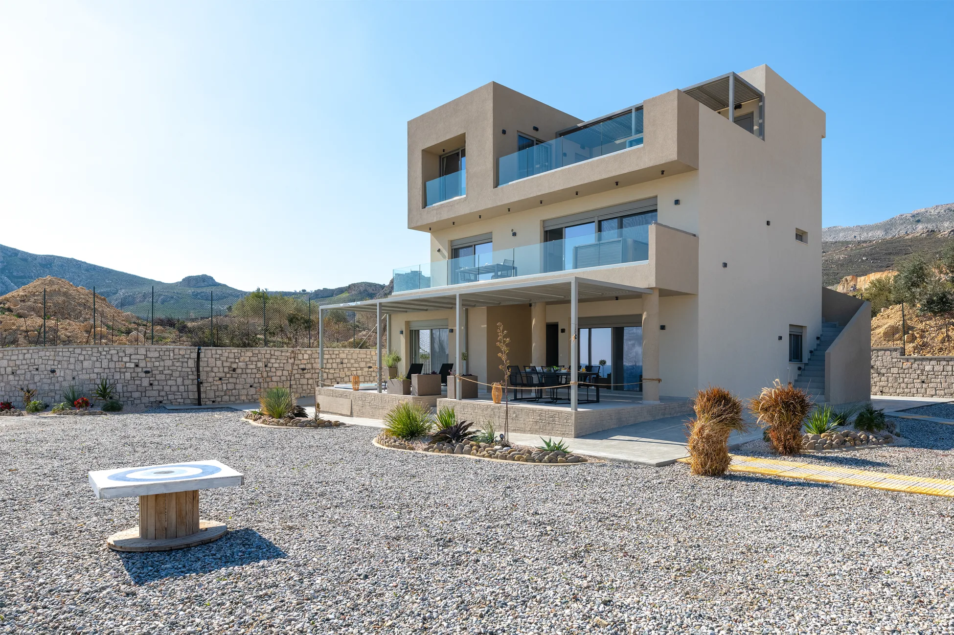 Beachfront Location: Aquamarine Luxury Suites in Stegna offers direct beachfront access with stunning sea views. Guests can relax on the sun terrace or in the lush garden, enjoying free WiFi throughout the property. Comfortable Amenities: Each apartment features air-conditioning, a private balcony, and a fully equipped kitchen. Additional amenities include a hot tub, outdoor seating area, and free on-site private parking. Nearby Attractions: Stegna Beach is a 7-minute walk away, while Rhodes International Airport lies 37 km from the property. Nearby attractions include Lindos Acropolis (23 km) and Rodini Park (32 km).
